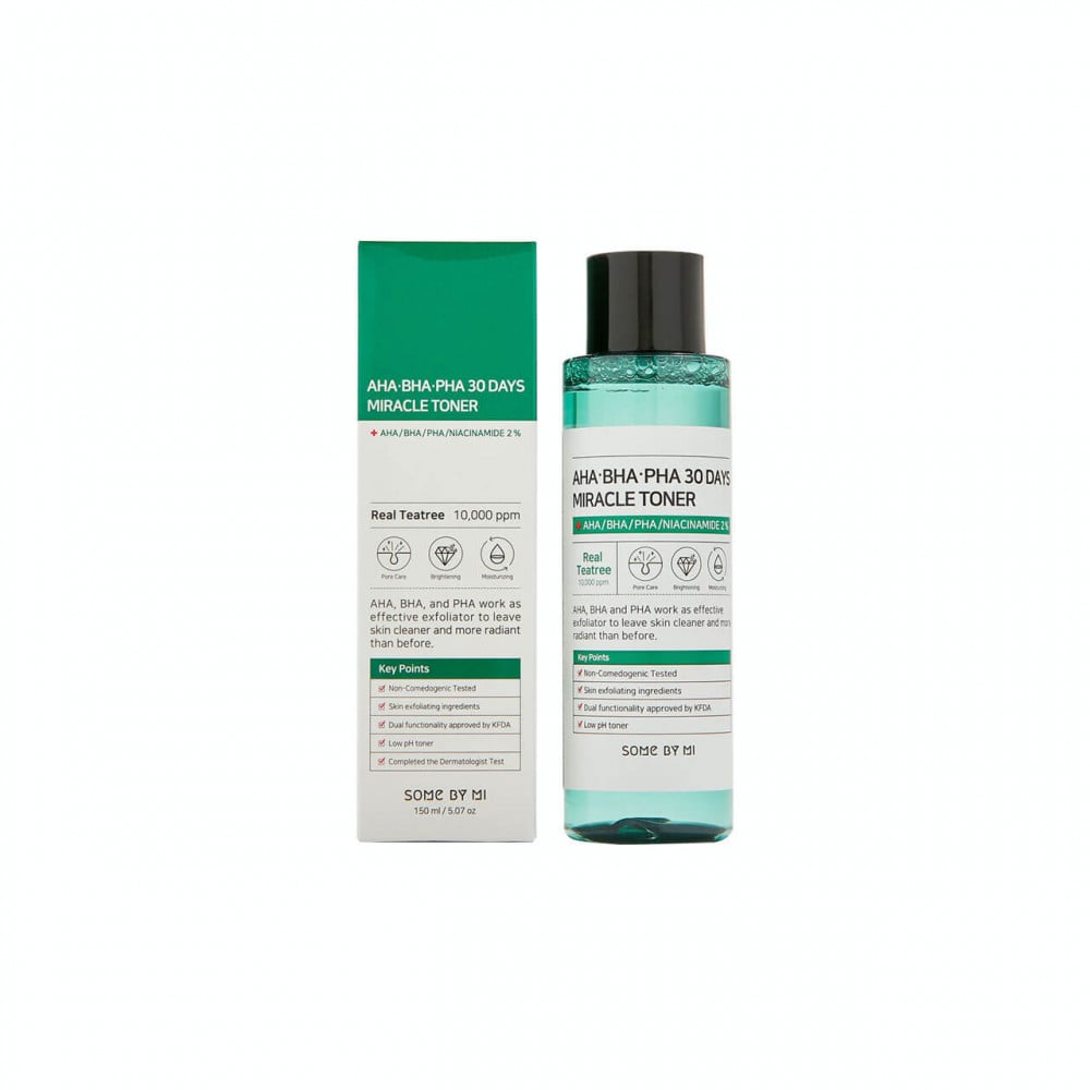 Some By Miracle Toner is a highly concentrated toner with tea tree extract, designed to address pores, improve skin's appearance, and eliminate acne and pimples. Its balanced formula restores the skin's natural pH, leaving it moisturized and soft.